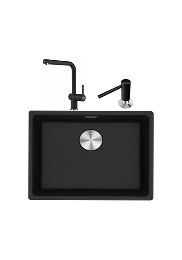 Franke Maris MRG 110-52 Granit Evye + Active Plus Doccia Spiralli Armatür + Sıvı Sabunluk (Nero)